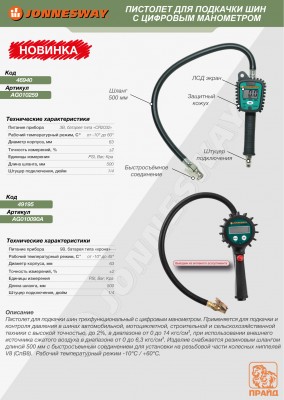 AG010259 Пистолет для подкачки шин с цифровым манометром, код товара: 46940, артикул: AG010259