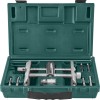 AE310014 Съемник ступицы и полуосиКод товара: 48122Артикул: AE310014 Описание Универсальная подборка приспособлений, обеспечивающих производстворабот по снятию ступиц и полуосей легковых автомобилей. Две дисковые траверсы позволяют использовать инструмент для обслуживания деталей с различным количеством колесных крепежных элементов с PCD 90-140 мм и 130-180 мм. В зависимости от типа работы съемник может использоваться как статический - с применением ходового винта, входящего в комплект поставки, или «обратного»... |