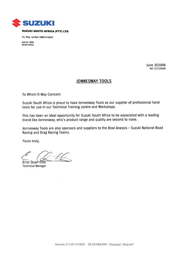 Концерн SUZUKIдля своих учебных и сервисных центров выбрал лучшее предложение среди поставщиков инструмента – от компании JONNESWAY, чья продуктовая линейка и качество являются одними из лучших в Мире.
