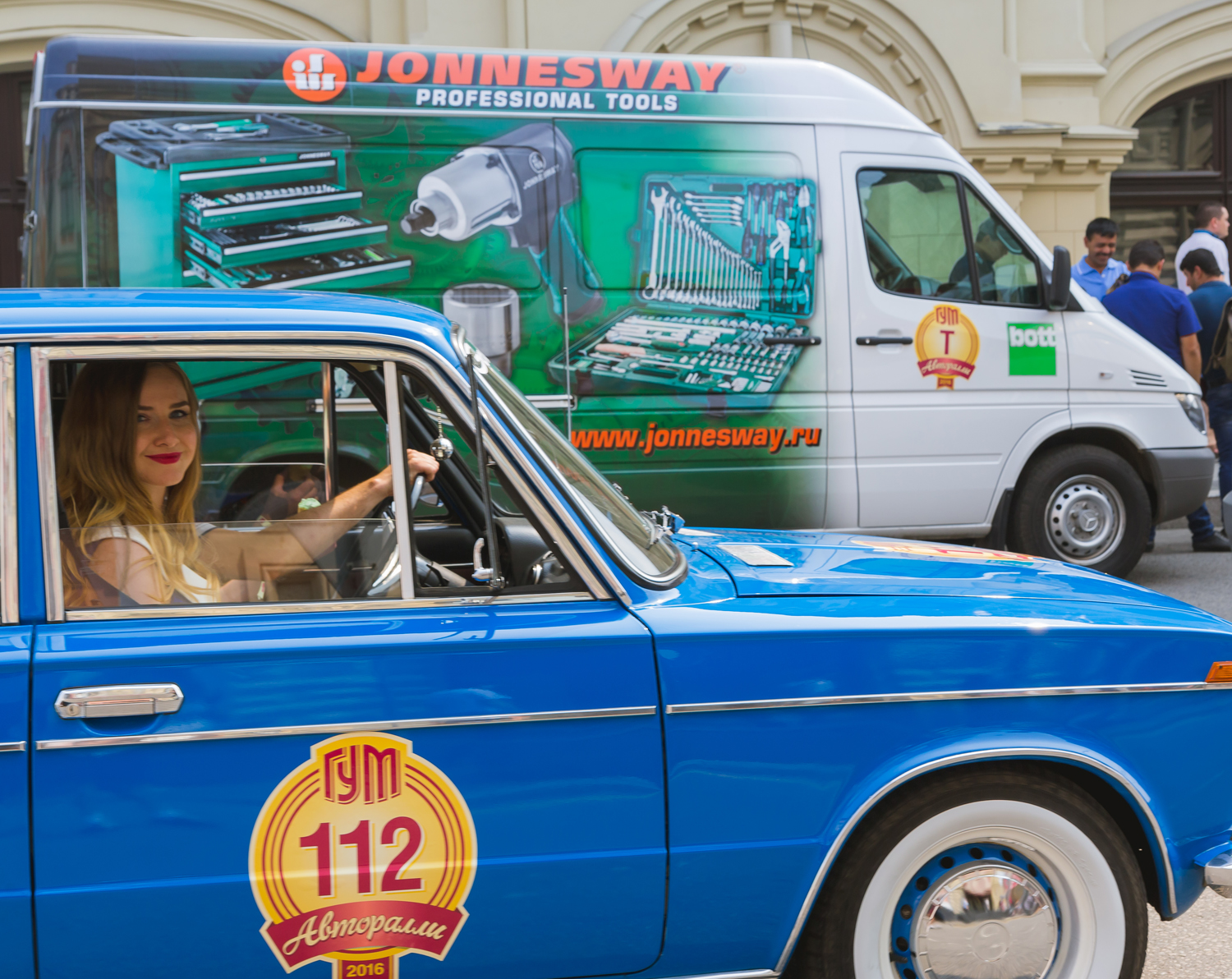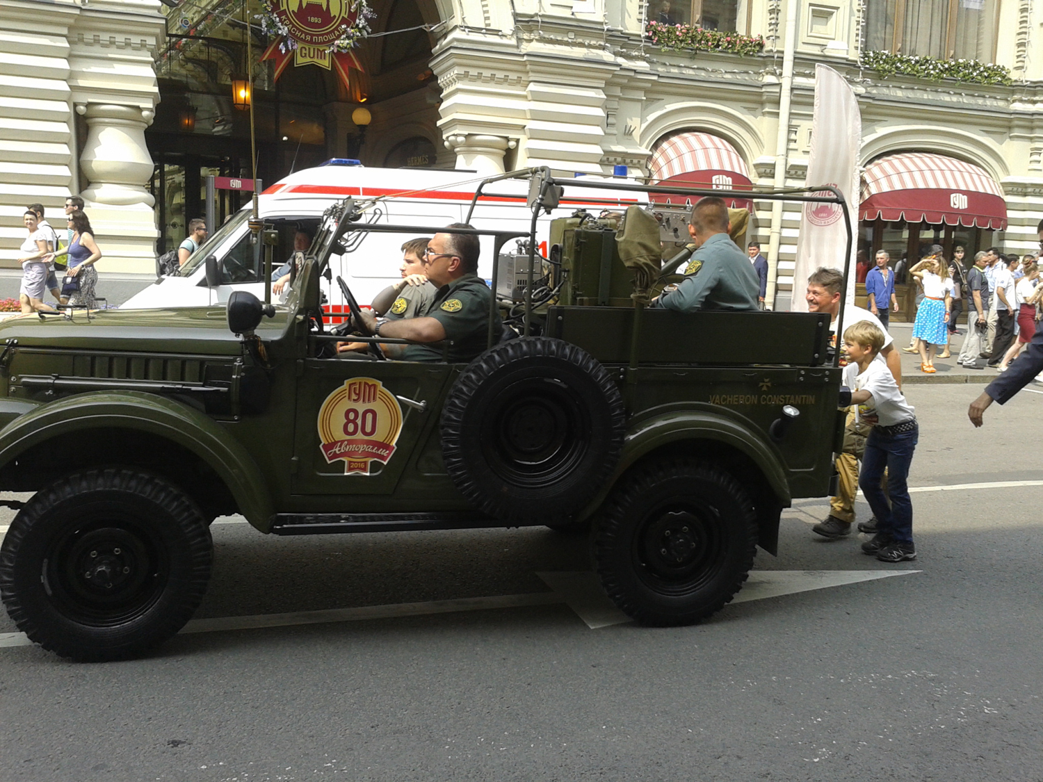 24 июля в Москве прошло красивейшее мероприятие, организованное Главным Универсальным Магазином и компанией Gorkyclassic - ралли классических автомобилей. В автопробеге приняли участие 140 экипажей на исторических автомобилях советского производства: ГАЗ, ЗИС, ЗИЛ, "Москвич", "Запорожец" и культовых иномарках: Alfa Romeo, Ferrari, Jaguar, Corvette, Mustang и др.. Костюм каждого экипажа соответствовал эпохе своего автомобиля.