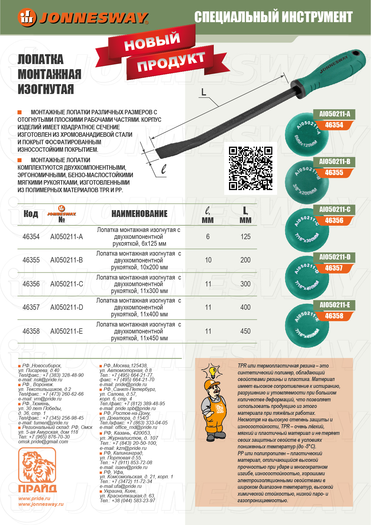 | AI050211-A | Лопатка монтажная изогнутая с двухкомпонентной рукояткой, 6х125 мм |