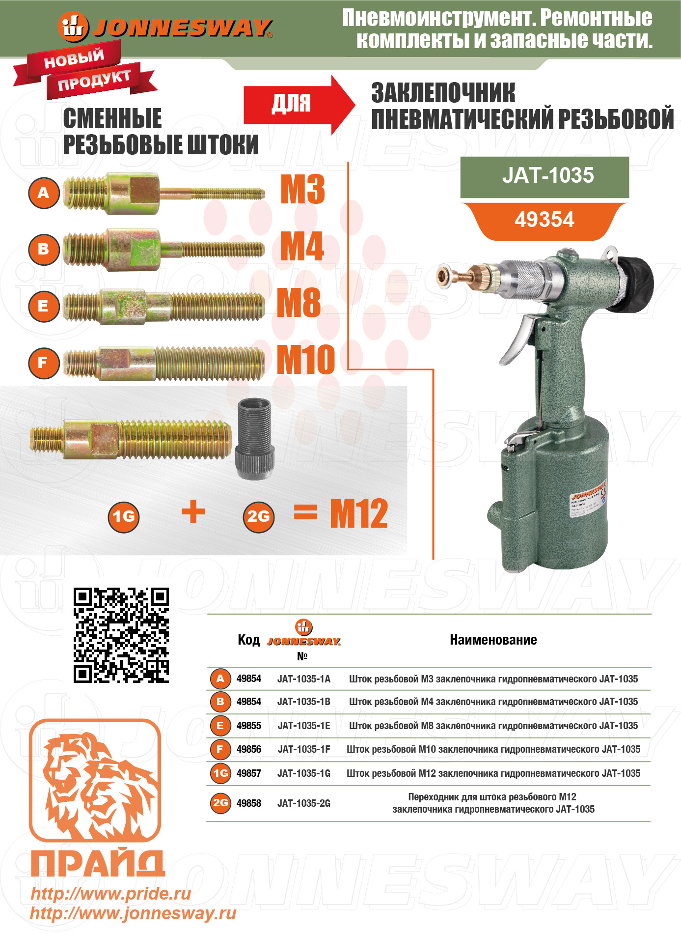 JAT-1035-1F Шток резьбовой М10 заклепочника гидропневматического JAT-1035, код товара: 46436, артикул: JAT-1035-1F