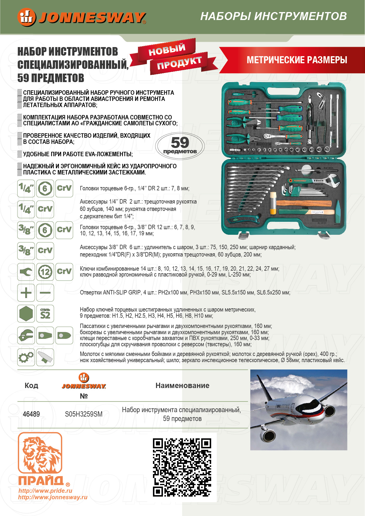 S05H3259SM Набор инструмента специализированный, 59 предметов, код товара: 46489, артикул: S05H3259SM
