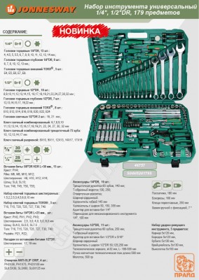 Набор инструмента универсальный 1/4", 1/2"DR, 179 предметов.