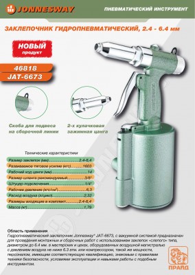 JAT-6673 Заклепочник гидропневматический композитный, 2.4 - 6.4 мм, код товара: 46818, артикул: JAT-6673