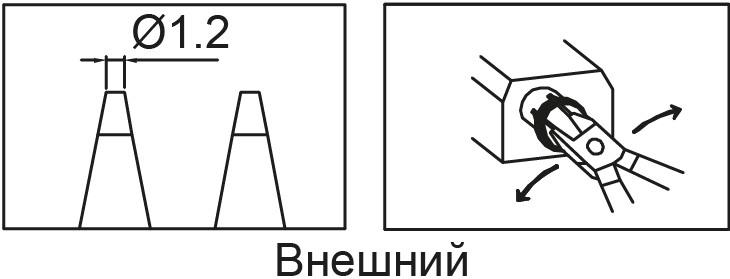 Щипцы для демонтажа стопорных колец.Группа специального шарнирно-губцевого инструмента, применяемого для производства работ, связанных с демонтажем и установкой стопорных колец. По области применения данные инструменты разделяются на два типа: щипцы для внутренних стопорных колец и для внешних.