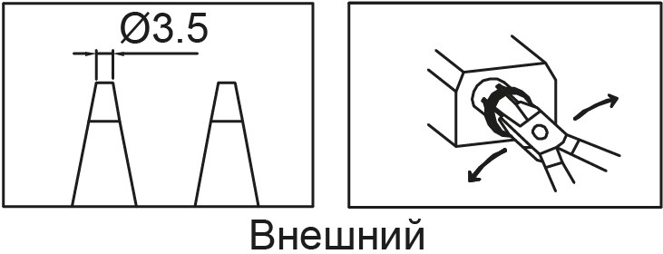 Щипцы для демонтажа стопорных колец. Группа специального шарнирно-губцевого инструмента, применяемого для производства работ, связанных с демонтажем и установкой стопорных колец. По области применения данные инструменты разделяются на два типа: щипцы для внутренних стопорных колец и для внешних.