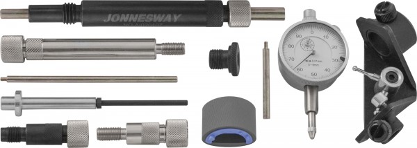 Приспособление для установки угла опережения зажигания ТНВД. В комплект поставки входят: набор адаптеров предназначенных для крепления стрелочного индикатора, сменные толкатели, установочный кронштейн и индикатор часового типа.