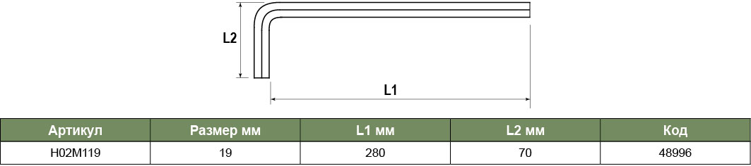 H02M119 Ключ торцевой шестигранный удлиненный, H19, код товара: 48996, артикул: H02M119