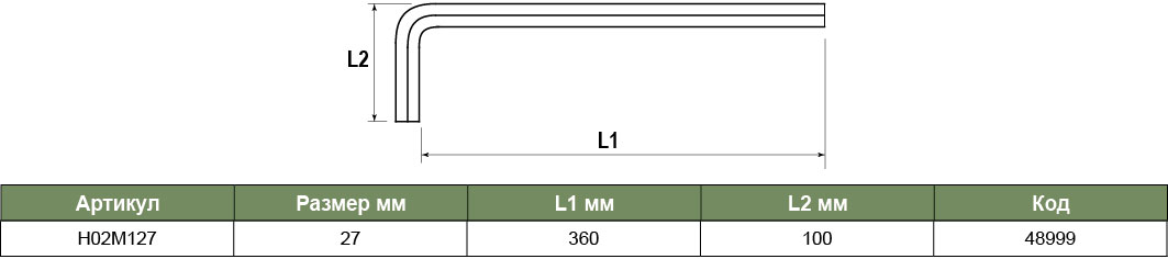 H02M127 Ключ торцевой шестигранный удлиненный, H27, код товара: 48999, артикул: H02M127