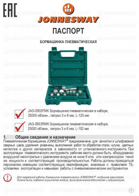 Пневматический механизированный инструмент JONNESWAY® ENTERPRISE CO., LTD., по уровню исполнения относятся к изделиям класса PROFESSIONAL, применяется для производства работ по сборке, ремонту и обслуживания продукции машиностроения, персоналом, имеющим соответствующую квалификацию, знакомым с правилами техники безопасности, условиями эксплуатации и навыками работы. Изделия применяются для производства работ по сборке, ремонту и обслуживания продукции машиностроения, персоналом, имеющим соответствующую квалификацию, знакомым с правилами техники безопасности, условиями эксплуатации и навыками работы с механизированным инструментом.