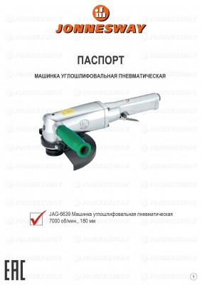 Пневматическая высокоскоростная углошлифовальная машинка Jonnesway предназначена для резки, шлифования и зачистки изделий из камня, металла и других материалов в мастерских и цехах, оборудованных воздушной магистралью с давлением воздуха не ниже 6 атм. или компрессором такой же мощности, персоналом, имеющим соответствующую квалификацию, знакомым с правилами техники безопасности, условиями эксплуатации и навыками работы с пневмомеханическим инструментом.