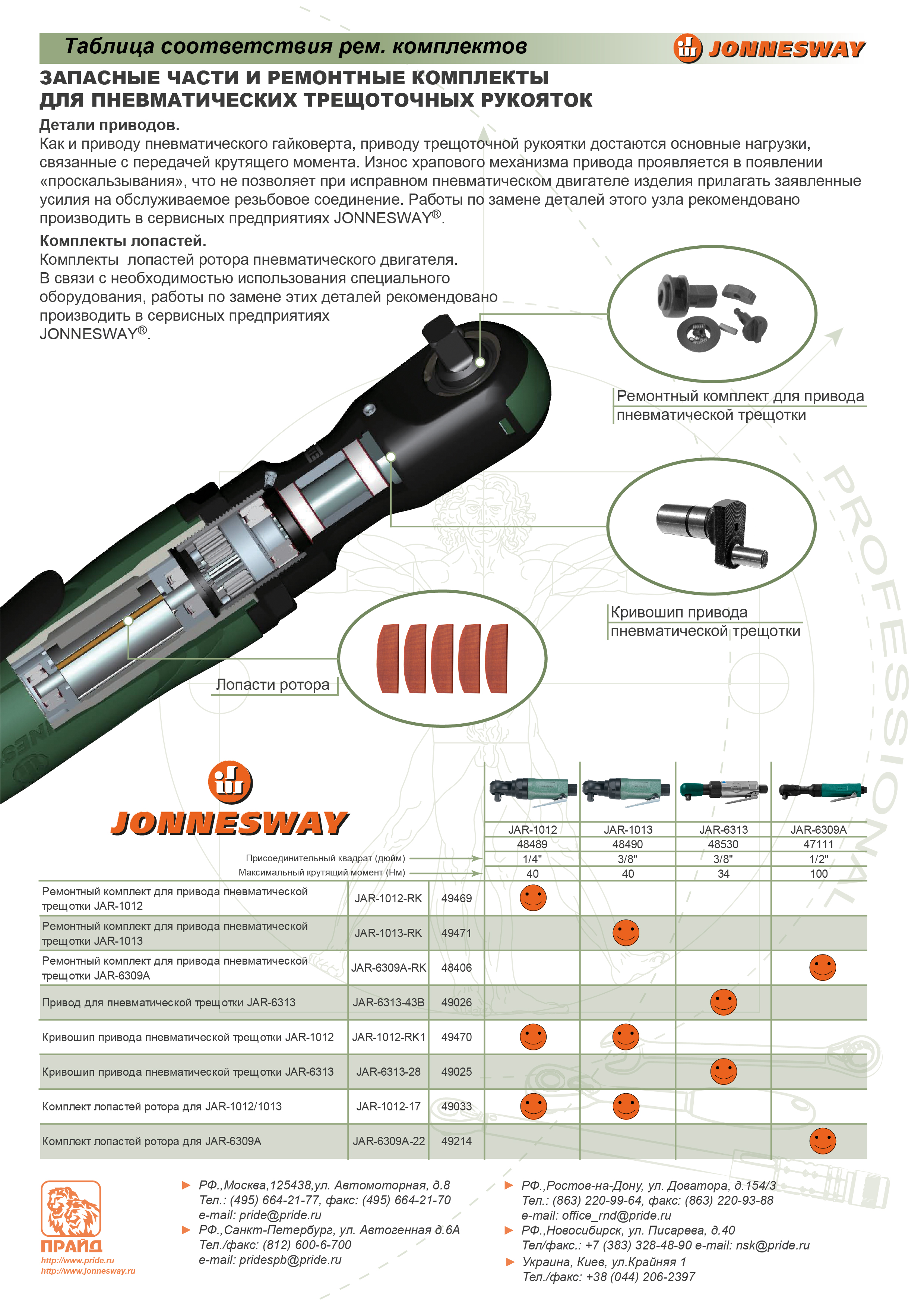 Ремонтный комплект двигателя трещотки пневматической JAR-1012/1013
