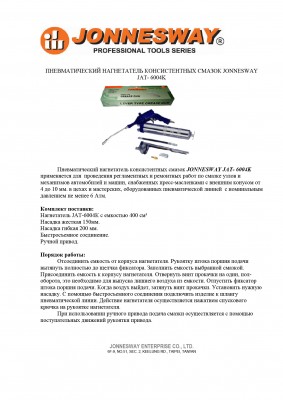| - | Нагнетатель JAT-6004К с емкостью 400 см³ |