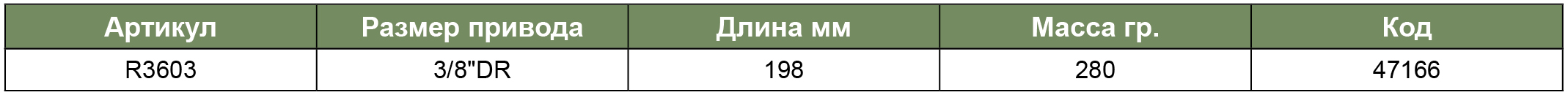 R3603 Рукоятка трещоточная 3/8"DR, 48 зубцов, 200 мм, код товара: 47166, артикул: R3603