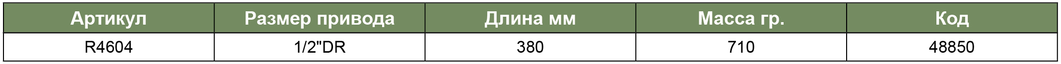 R4604 Рукоятка трещоточная удлиненная 1/2"DR, 48 зубцов, 380 мм, код товара: 48850, артикул: R4604