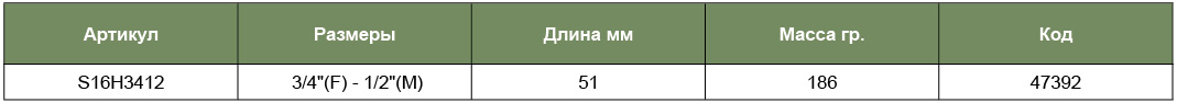 S16H3412 Переходник 3/4"DR(F)*1/2"DR(M), код товара: 47392, артикул: S16H3412