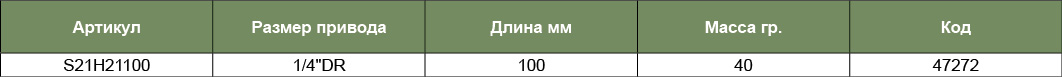 S21H21100 Удлинитель с шаром 1/4"DR, 100 мм, код товара: 47272, артикул: S21H21100