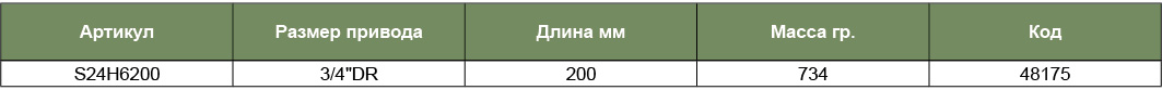 S24H6200 Удлинитель 3/4"DR, 200 мм, код товара: 48175, артикул: S24H6200