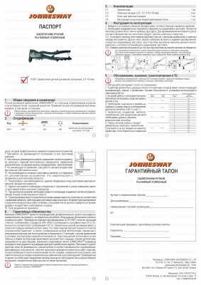 3.1 На изделия торговой марки JONNESWAY® распространяется понятие «ПОЖИЗНЕННАЯ ГАРАНТИЯ», то есть, подлежит замене