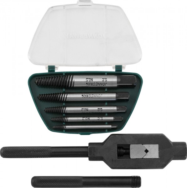 Набор экстракторов спиральных конических с держателем 7 предметов. Инструменты изготовлены из легированной хромомолибденовой стали, хранятся в пластиковом пенале. Экстракторы имеют присоединительные квадраты разных размеров для передачи крутящего момента. Набор комплектуется разводным метчикодержателем.