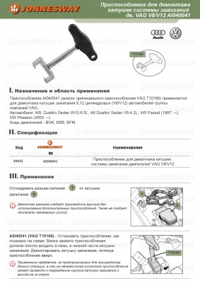 AI040041 Инструмент для демонтажа катушек системы зажигания двигателей VAG V8/V12, 1.8 T, FSI 2.0 л., код товара: 49435, артикул: AI040041