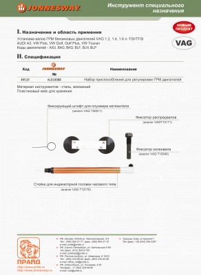 AL010088 Набор для установки валов ГРМ двигателей VAG 1.2, 1.4, 1.6 л. FSI/TFSI, код товара: 49519, артикул: AL010088