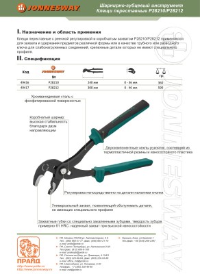 Шарнирно-губцевые инструменты JONNESWAY® ENTERPRISECO., LTD., по уровню исполнения относятся к изделиям класса PROFESSIONAL, применяются для производства работ по сборке, ремонту и обслуживания продукции машиностроения, персоналом, имеющим соответствующую квалификацию, знакомым с правилами техники безопасности, условиями эксплуатации и навыками работы.