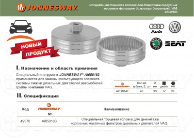 AI050183 Специальная торцевая головка для демонтажа корпусных масляных фильтров дизельных двигателей VAG, код товара: 49576, артикул: AI050183