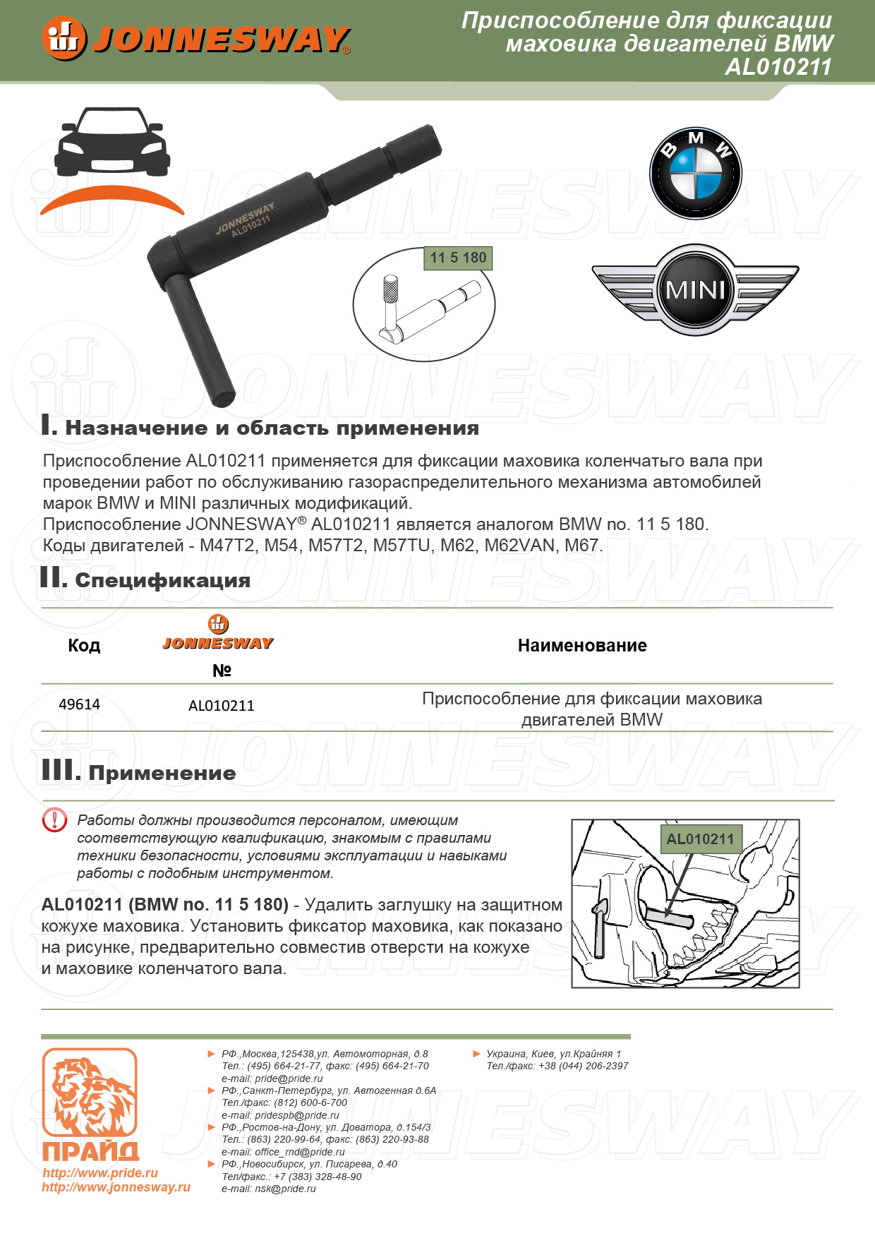 AL010211 Приспособление для фиксации маховика двигателей BMW. BMW 115 180, код товара: 49614, артикул: AL010211