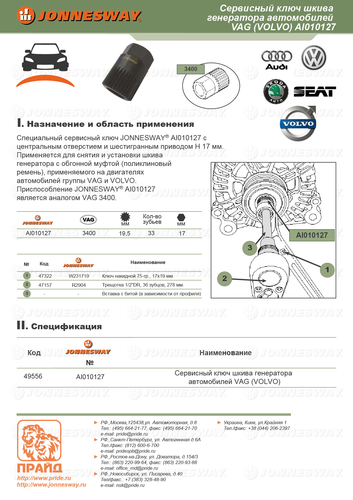 AI010127 Сервисный ключ шкива генератора VAG (VOLVO), код товара: 49556, артикул: AI010127