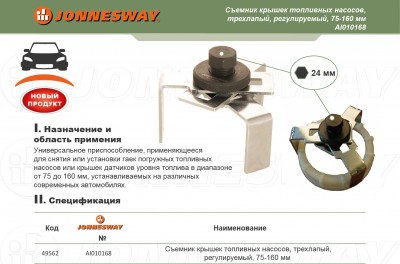 AI010168 Съемник крышек топливных насосов, трехлапый, регулируемый. 75-160 мм., код товара: 49562, артикул: AI010168