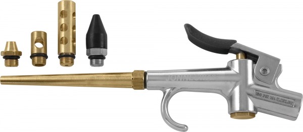 Пистолет продувочный с насадками, 5 предметов. Форма корпуса обеспечивает надежное удержание и удобство использования. Конструкция клапана обеспечивает увеличенный ресурс.