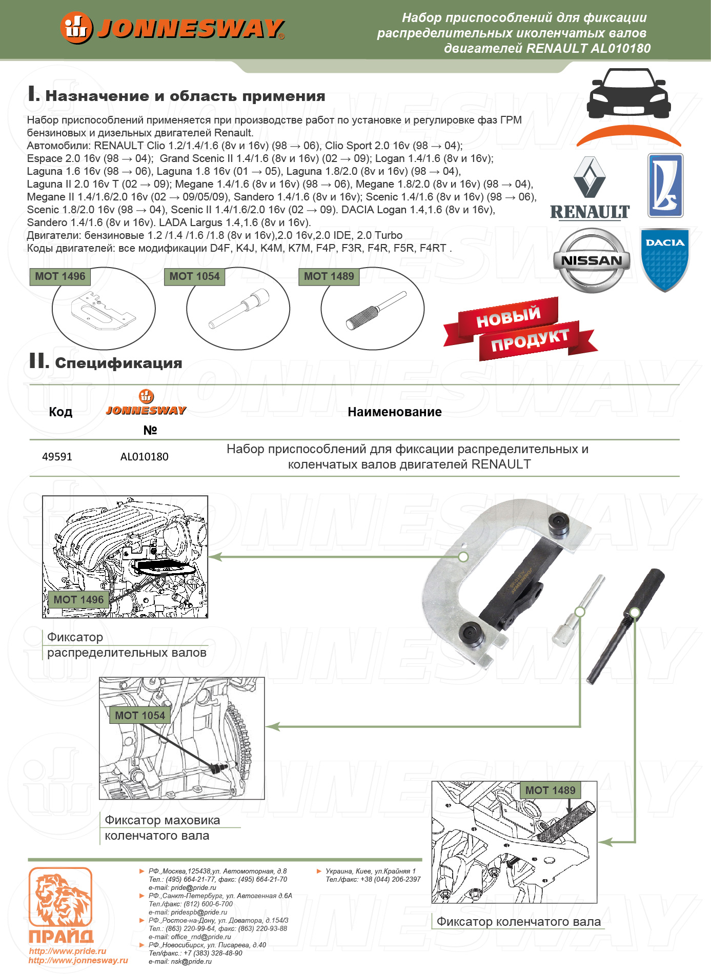 AL010180 Набор приспособлений для фиксации распределительных и коленчатых валов двигателей RENAULT, код товара: 49591, артикул: AL010180