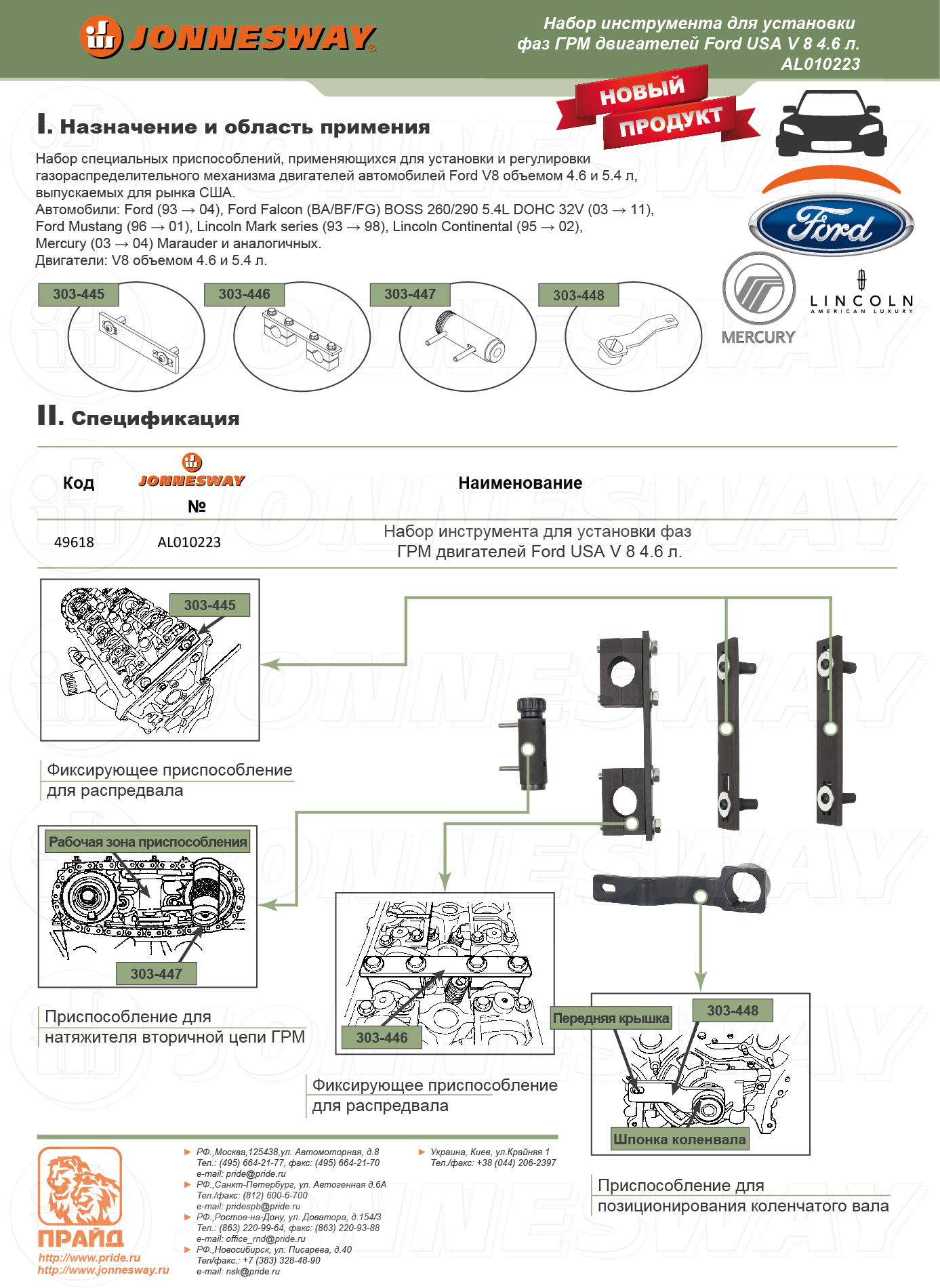 AL010223 Набор инструмента для установки фаз ГРМ двигателей Ford USA V 8 4.6 л., код товара: 49618, артикул: AL010223