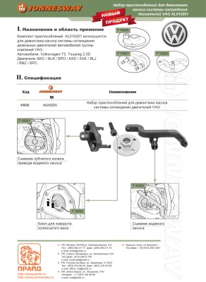 AL010201 Набор приспособлений для обслуживания насоса системы охлаждения двигателей VAG, код товара: 49606, артикул: AL010201
