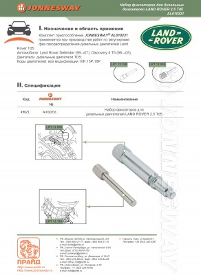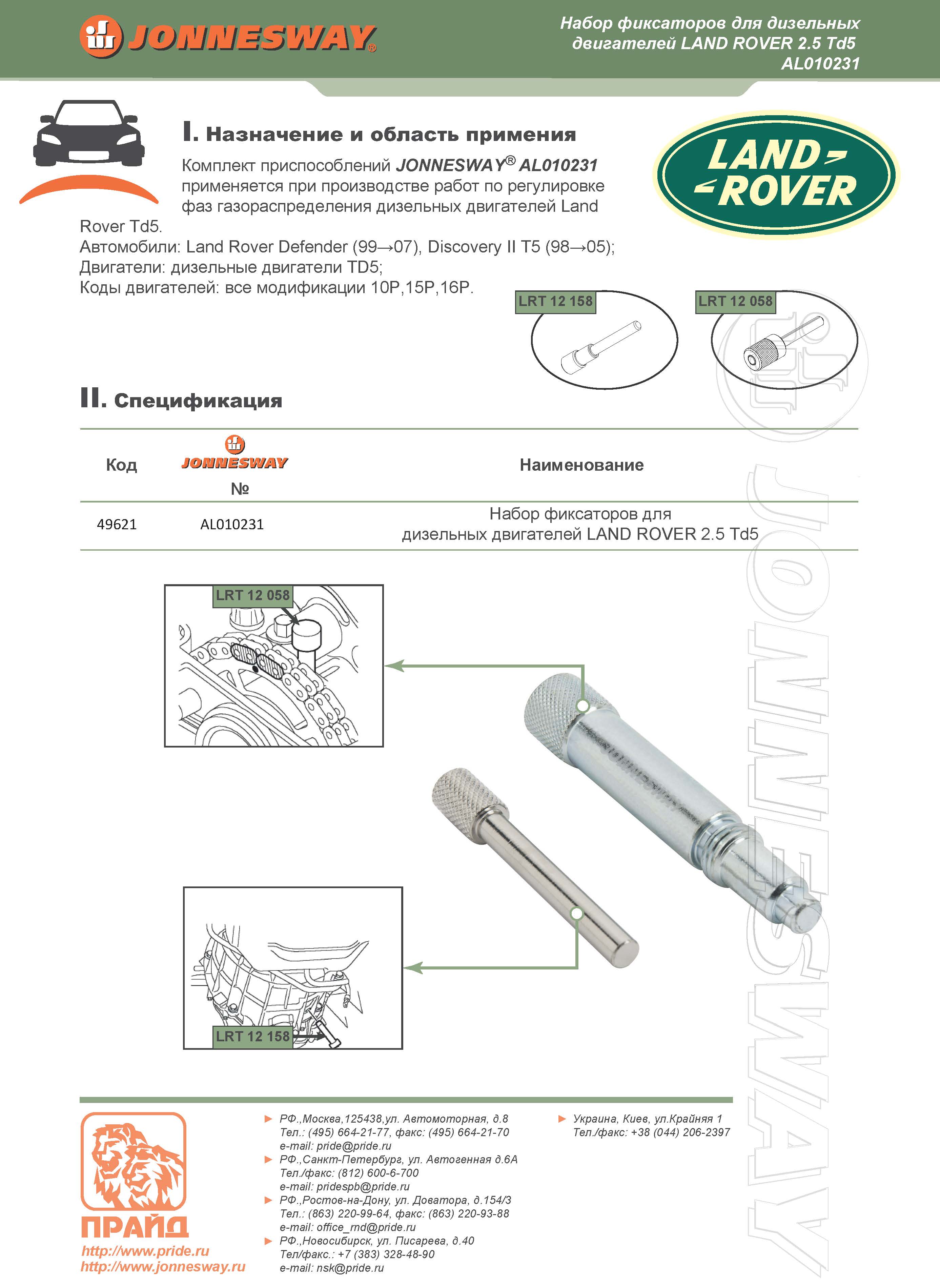 AL010231 Набор фиксаторов для дизельных двигателей LAND ROVER 2.5 Td5, код товара: 49621, артикул: AL010231