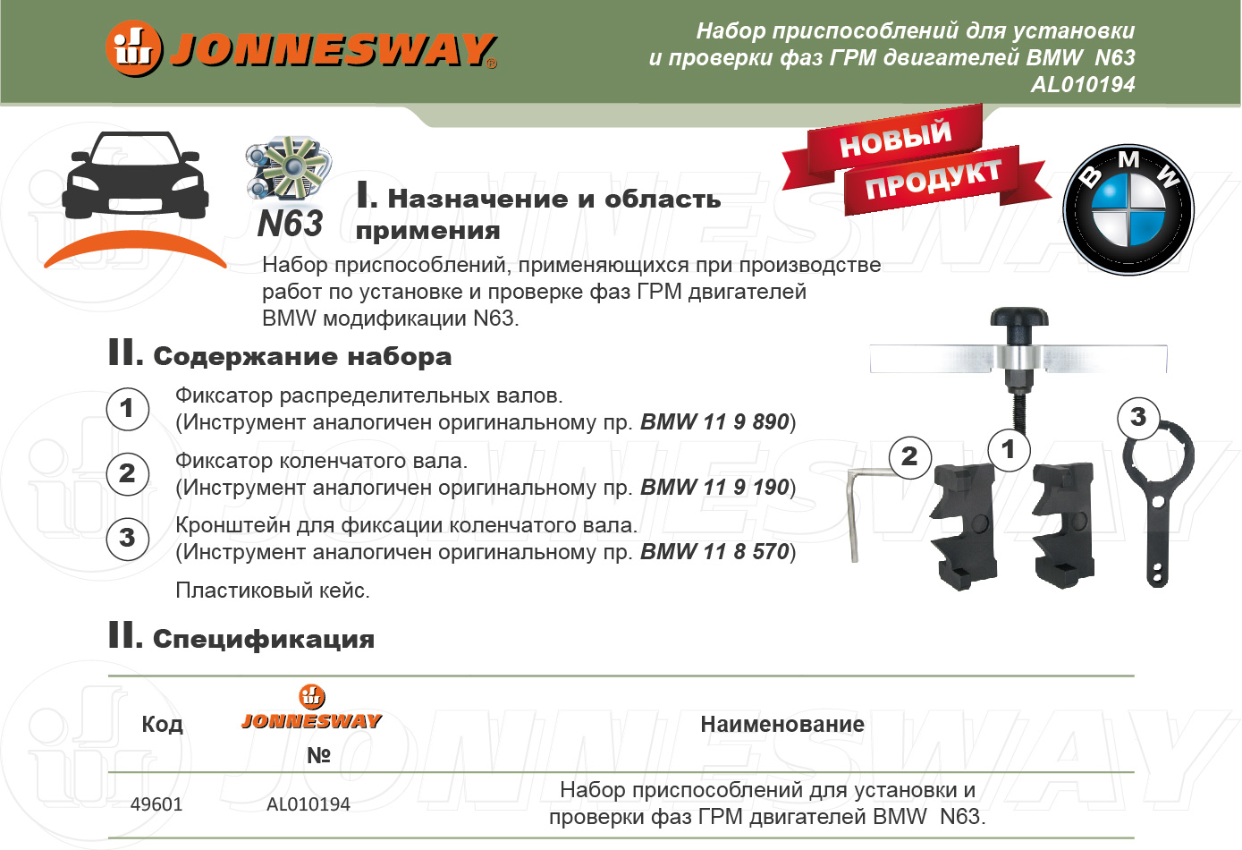 AL010194 Набор приспособлений для установки и проверки фаз ГРМ двигателей BMW N63. , код товара: 49601, артикул: AL010194