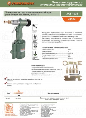 JAT-1035 Заклепочник гидропневматический для резьбовых заклепок, М4-10, код товара: 49354, артикул: JAT-1035