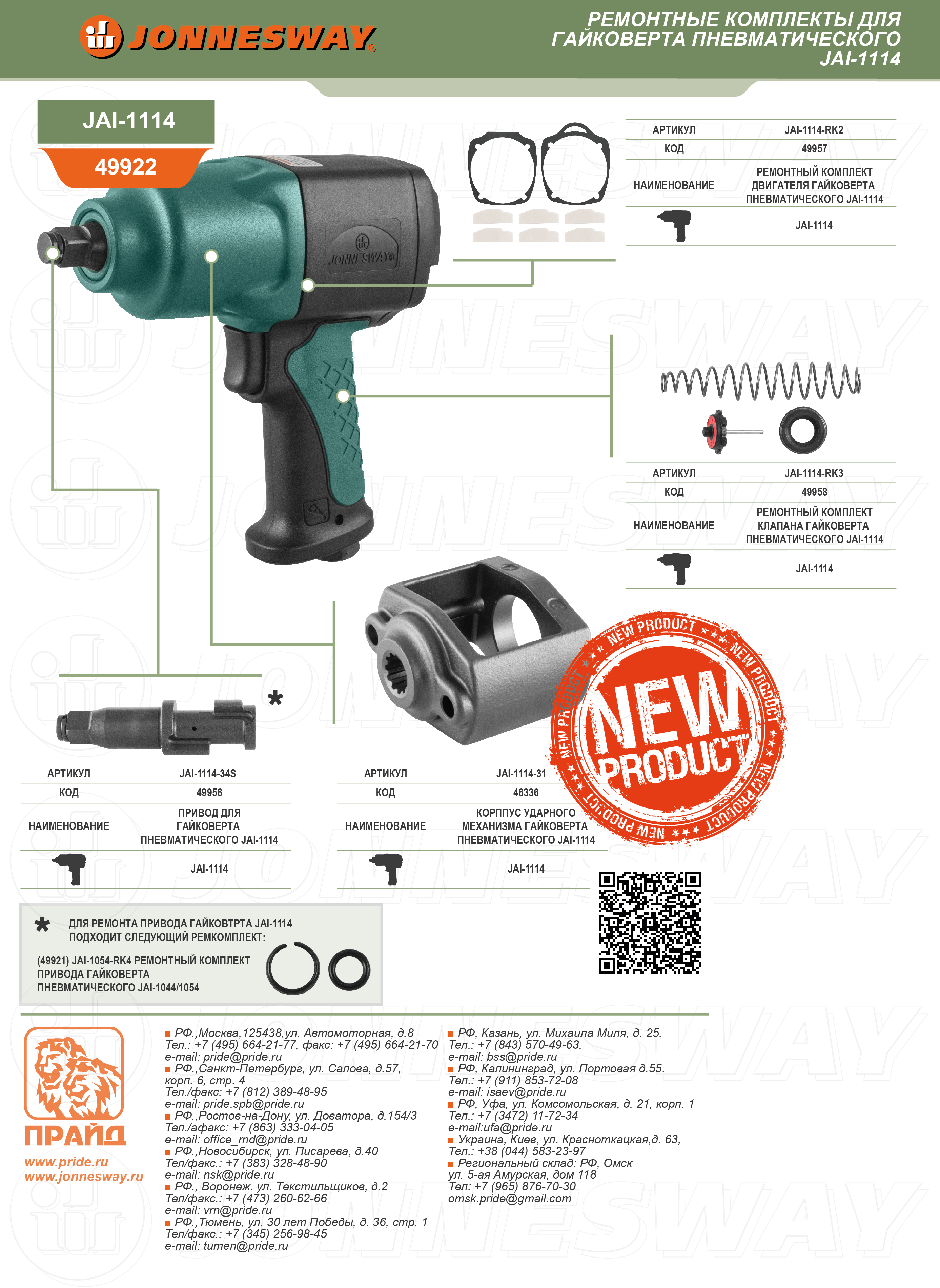 Ремонтный комплект клапана гайковерта пневматического JAI-1114.
