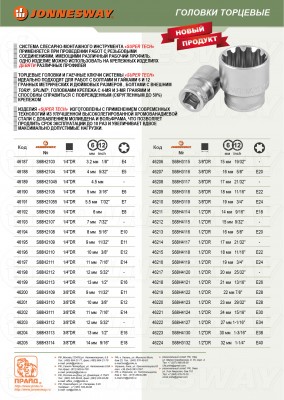 | Артикул | Присоединительный квадрат | Размер, мм | Размер, дюйм | E-Torx | D, мм | L, мм | Вес, гр | Код |