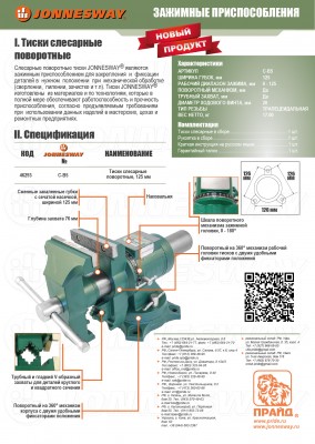 Тиски слесарные поворотные, 125 мм. Тиски Jonnesway изготовлены из материалов и по технологиям, которые в полной мере обеспечивают работоспособность и прочность приспособления, согласно предъявляемым требованиям при использовании данных изделий в мастерских, цехах и ремонтных предприятиях.