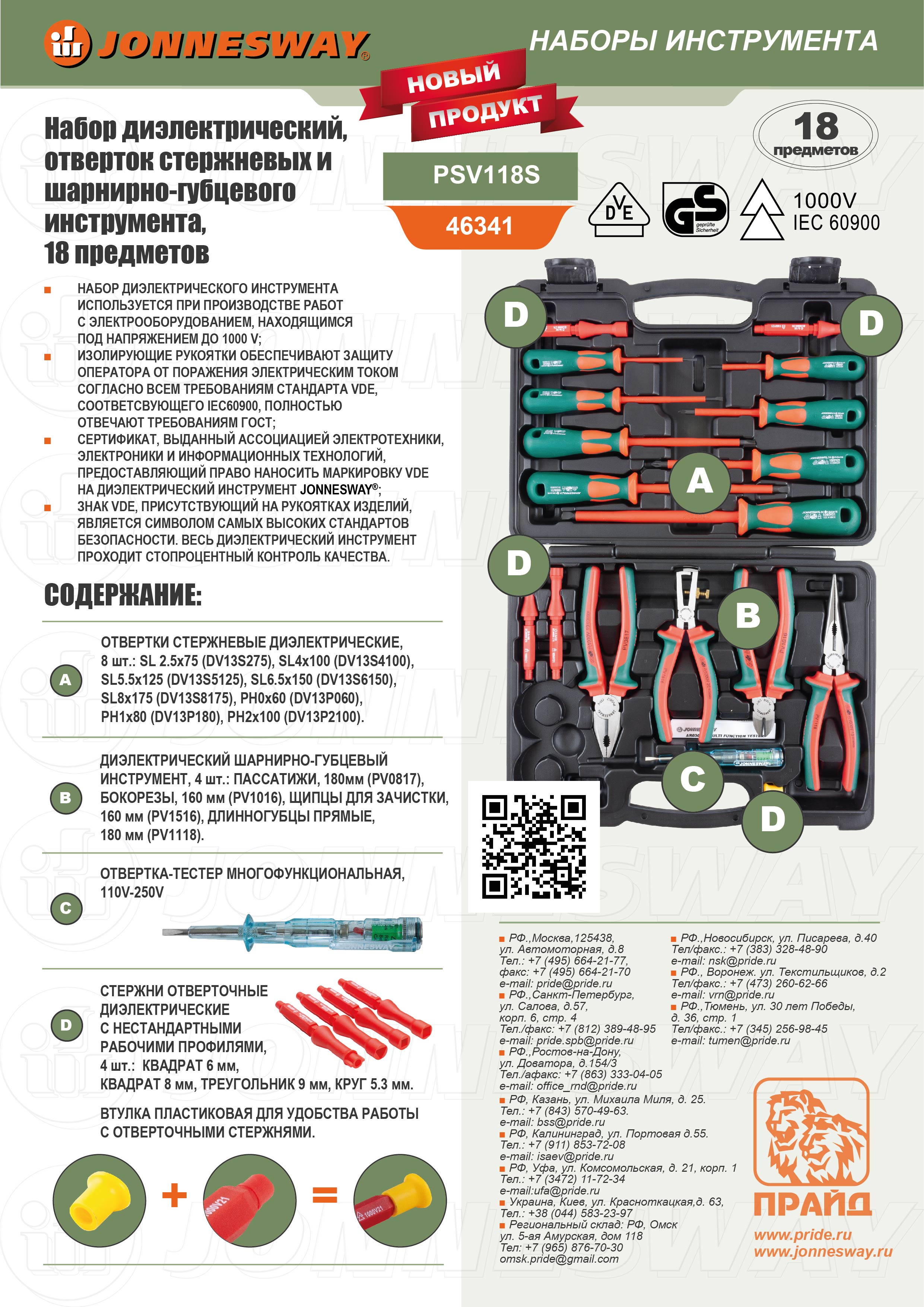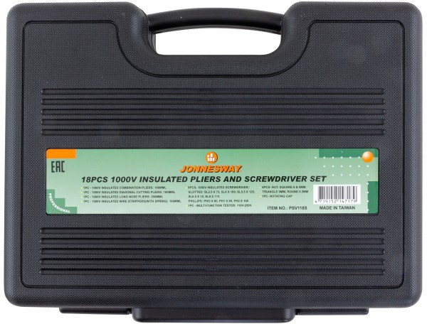 PSV118S Набор диэлектрический, отверток стержневых и шарнирно-губцевого инструмента, 18 предметов, код товара: 46341, артикул: PSV118S