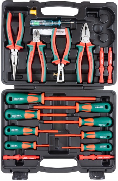Набор диэлектрический, отверток стержневых и шарнирно-губцевого инструмента, 18 предметов. Изолирующие рукоятки обеспечивают защиту оператора от поражения электрическим током согласно всем требованиям стандарта vde, соответсвующего IEC60900, полностью отвечают требованиям гост. Сертификат, выданный ассоциацией электротехники, электроники и информационных технологий, предоставляющий право наносить маркировку VDE на диэлектрический инструмент Jonnesway. Знак VDE, присутствующий на рукоятках изделий, является символом самых высоких стандартов безопасности. Весь диэлектрический инструмент проходит стопроцентный контроль качества.