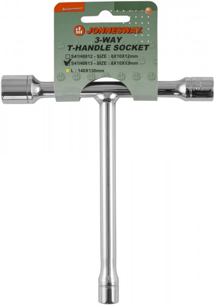 S41H0813 Ручка Т-образная 3-стороняя с торцевыми головками, 8,10,13 мм, L-130-140 мм, код товара: 49841, артикул: S41H0813