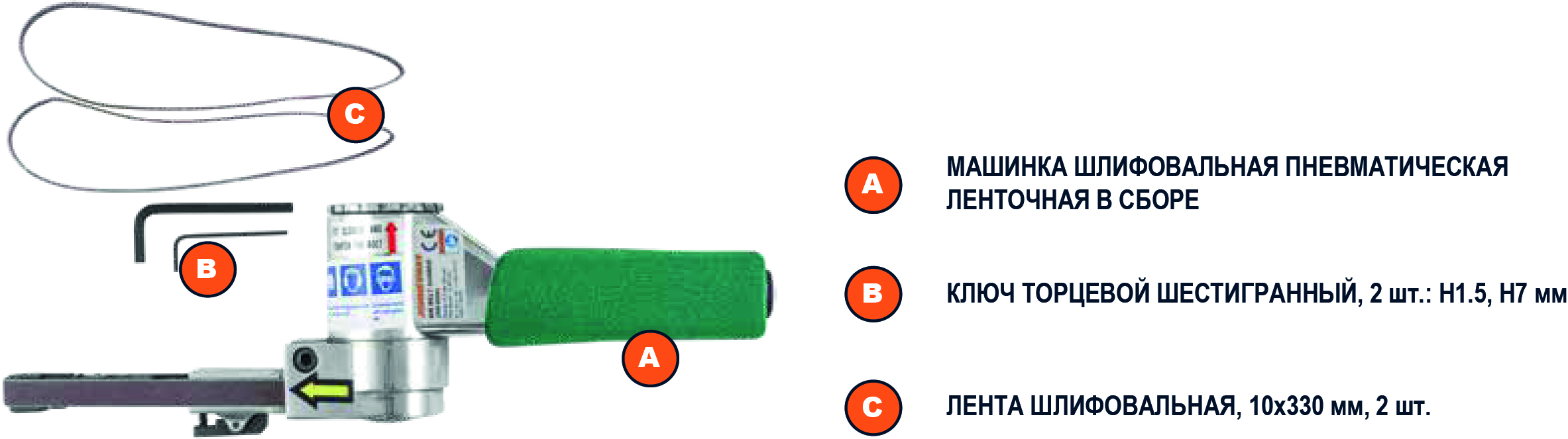 Машинка шлифовальная пневматическая, ленточная, 16000 об./мин., 10х330 мм. Шлифмашины ленточного типа отличаются хорошей компактностью, высокой производительностью и прекрасно подходят для работы в зонах с ограниченным доступом.