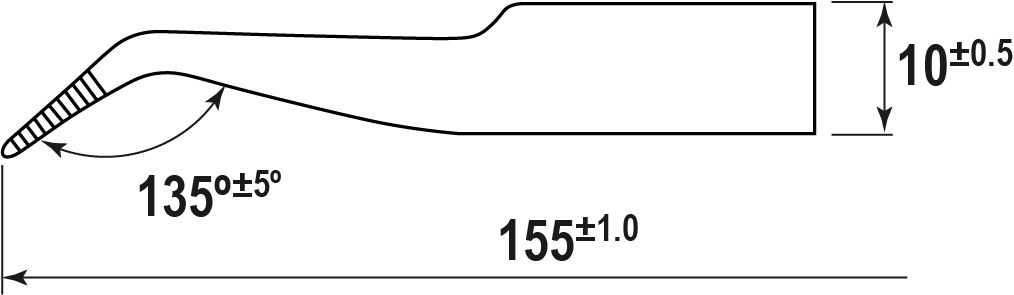 Пинцет универсальный, длинной 115 мм. Инструменты изготовлены из нержавеющей стали и имеют финишную полировку поверхности. Рабочая часть МЕО1002 изогнута под углом 135° по отношению к оси инструмента. Внутренние поверхности рабочих зажимов снабжены насечками для более надежного. Удержания предметов. Корпус изделий в местах удержания имеет рифленую поверхность для предотвращения проскальзывания при удержании инструмента.